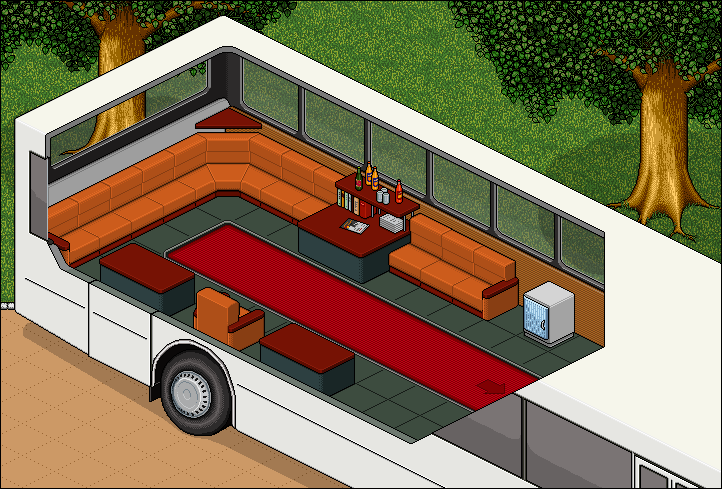 Finnish bus carries the name of EOPH, an anti-drugs organisation. But there’s also experts available from other organisations, not in infobus though, like Netari - youthcare on the internet - and the MLL. Actually, there’s a confusing amount of collaborating between these organisations (and Sulake) going on, resulting in websites/badges like the Manteli and HUBU ones. Details on the badges page.