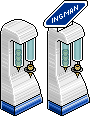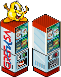Not a real brand, Sulake is using these items to show future advertisers what is possible within hotel. They probably link their potentual advertisers to the BubbleJuice page (available in English and Finnish, maybe more) to let them see the possibilities with their own eyes. April 2009 these showed up in a part of the ‘Mall’ called ‘Bubble Lounge’ in UK.